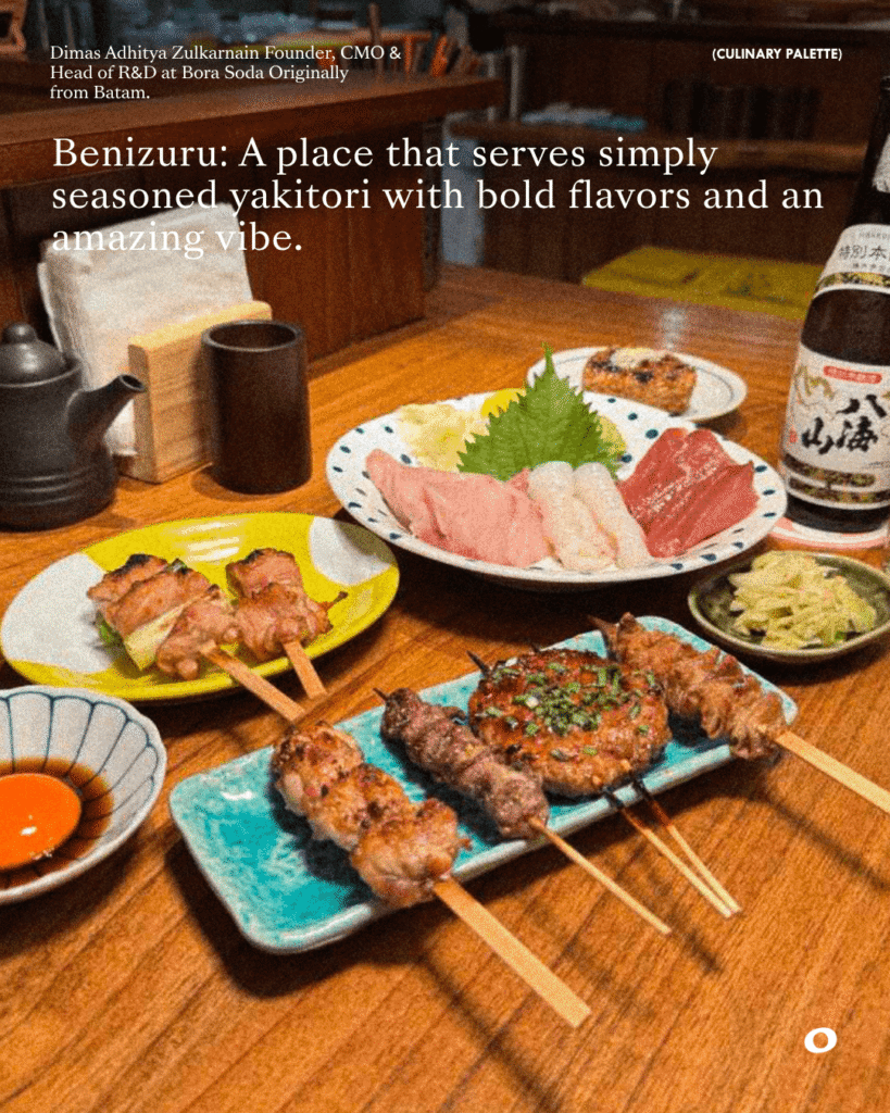 From bold yakitori to nostalgic pasta, home-style Indonesian flavors, and expressive Nusantara cuisine, his choices highlight how diverse and personal a dining experience can be. And as he puts it, every experience only gets better when paired with Bora.