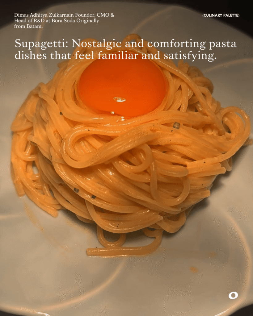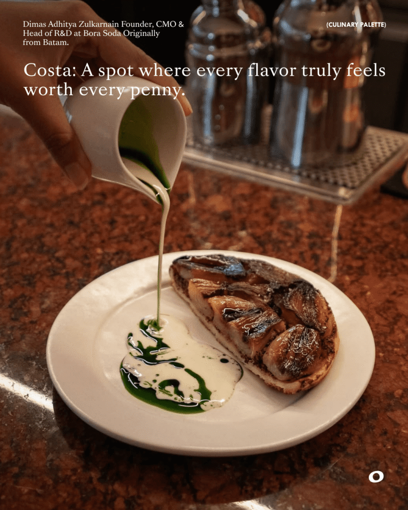 Dimas Adhitya Zulkarnain Founder, CMO & Head of R&D at Bora Soda, originally from Batam approaches food with a perspective that goes beyond taste. For him, dining is closely tied to identity, memory, and the overall experience.